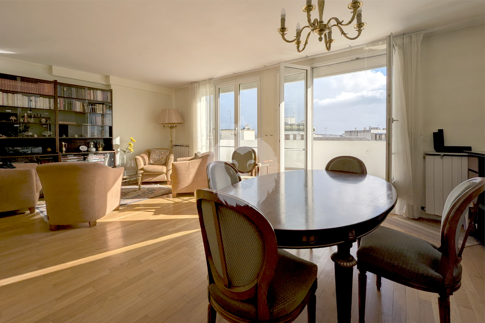 Au 5ème étage avec ascenseur d'une copropriété bien tenue, l'appartement se compose d'une entrée spacieuse, d'un double séjour ouvrant sur un balcon exposé sud-est, une cuisine indépendante et dinatoire menant au second balcon dont la vue donne sur la Mairie.